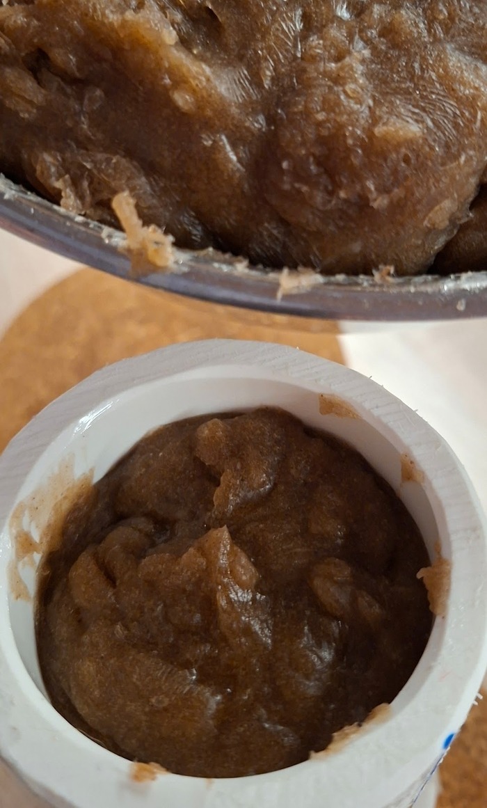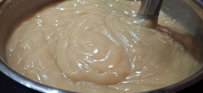 Перемешиваем до однородности. Получается густая тёмная масса с характерным медово-пряным запахом.
