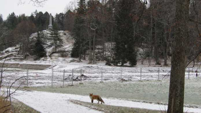 В петербургский сквер «Елисейские поля» в холодный воскресный день 13 декабря забрела пушистая лиса. Поймать пушистого зверя в объектив своей камеры удалось экскурсоводу Наталье Тихомировой.