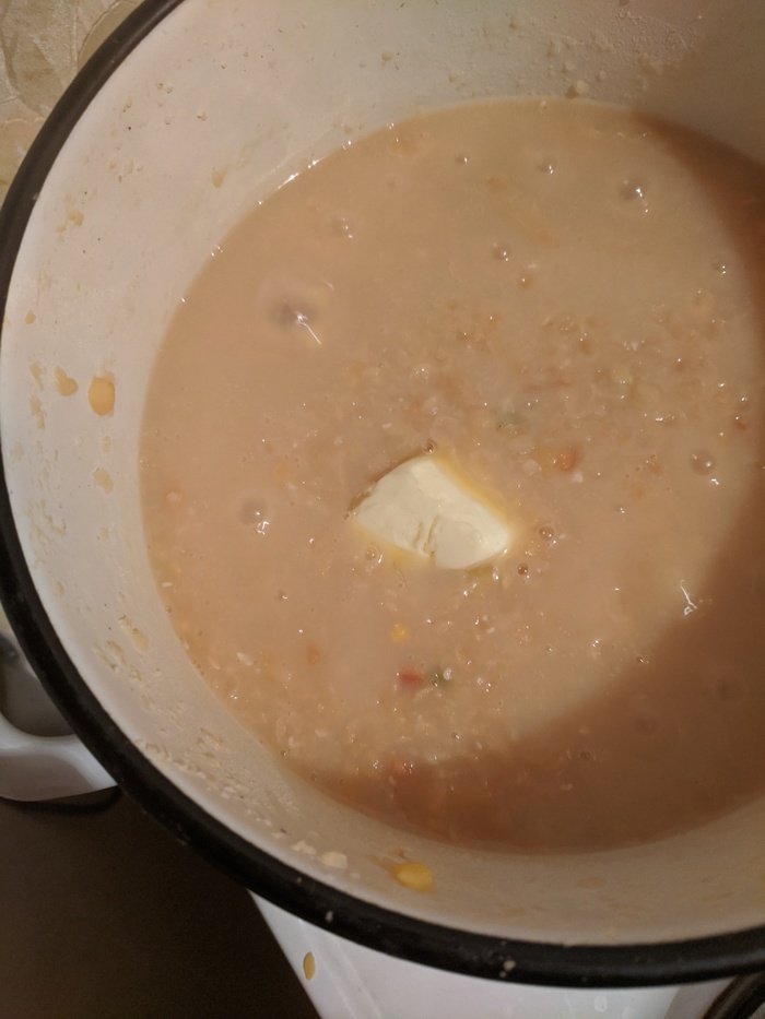 Пока курица остывает на освободившийся сковородке жарю сухарики с чесночным маслом, чтобы чеснок не попал на сухарики, процеживаю масло через сито.