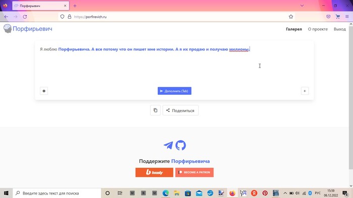 8. «Порфирьевич» (https://porfirevich.ru): Сервис, дописывающий истории. Вы начинаете, он продолжает. Подходит для поиска идей и борьбы с писательским блоком.
