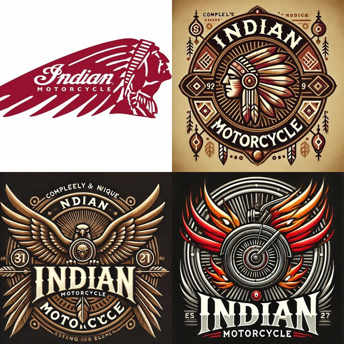 Indian Motorcycle: Логотип Indian Motorcycle был обновлен несколько раз с момента его появления в 1901 году, но его ключевой элемент — изображение индейского головного убора — остаётся неизменным на протяжении всей истории бренда.