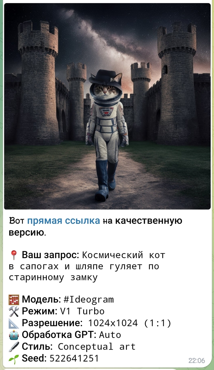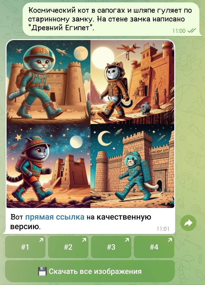 Поддержка русскоязычных запросов, понятные результаты на коротких промптах.
