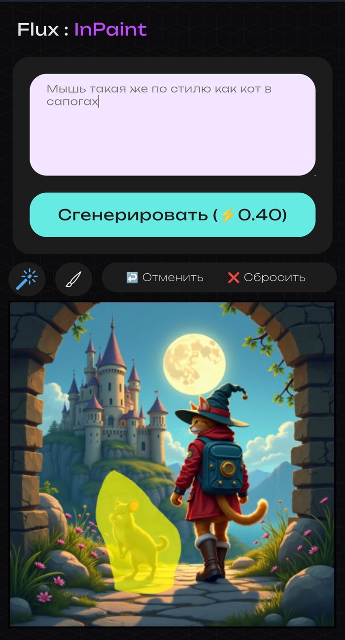 Мощная способность Flux — это редактировать выделенную область и менять её по вашему текстовому запросу: