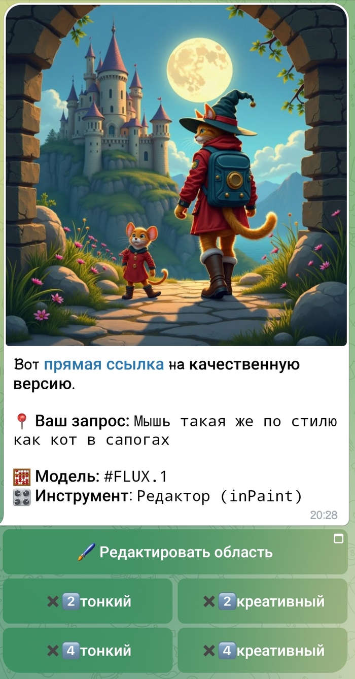 Контекстные правки: можно уточнять промпт прямо по ходу диалога.