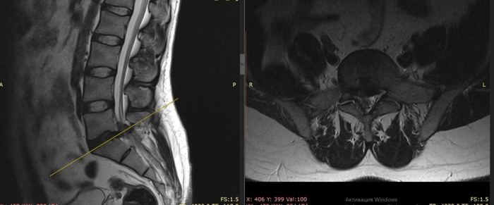 Жалобы на боли в спине, отдают в правую ногу. Сейчас чуть лучше. На МРТ такая штука