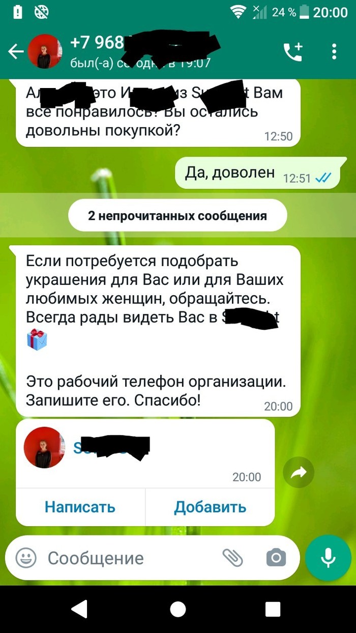 Думаю, интересно как, чаевые можно оставить. Нажал кнопку, выскочила другая страничка, предлагает минимально 50 рубликов подарить милашке и максимально до 10000 списать с карты. Думаю 50 рублей можно на чай дать, а так как шел домой пешком по улице руки заняты пакетами, решил дома сделаю. Через минут 5 приходит с неизвестного номера в вотсап сообщение, как понял от продавца ювелирки.