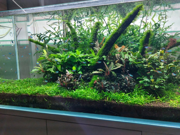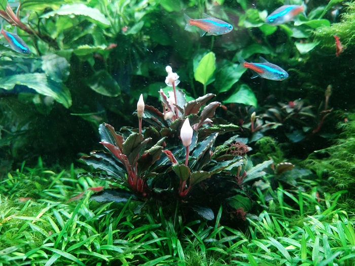 Купил себе аквариум. Небольшой, 30 литров. Насыпал камушки, поставил искусственных растюшек, грот, кормушку-кружок, свет, воздух. Вода из-под крана, но отстоявшаяся месяц. Чищу регулярно, раз в неделю. Воду сливаю и меняю раз в две недели. Рыбки - неоны, девять штук. Изначально было столько. Теперь их семь.