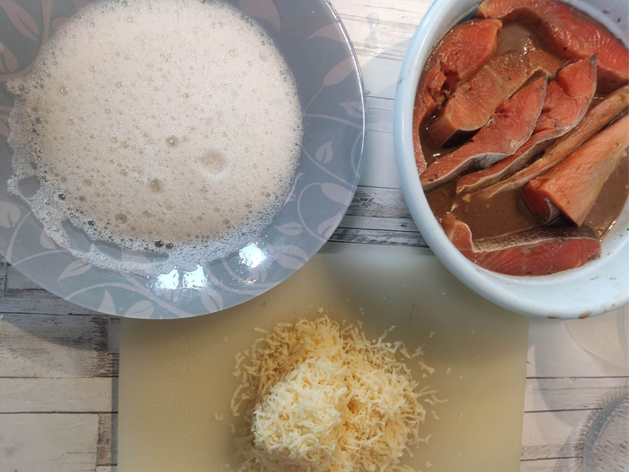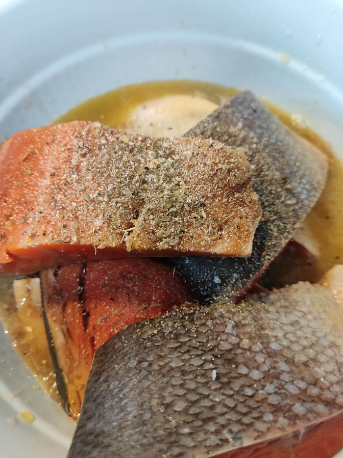 Красная рыбка - это всегда вкусно. У меня было в запасах замороженное филе нерки. С вечера достаём, перекладываем в холодильник, чтобы за ночь спокойно разморозилась.