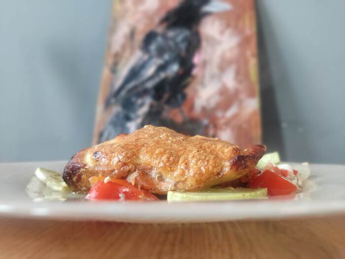 Нерка с сырной корочкой на овощах