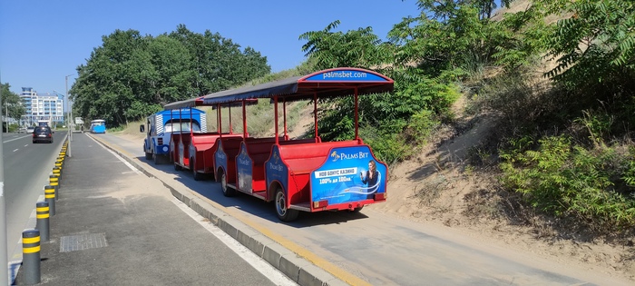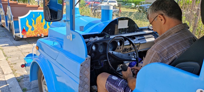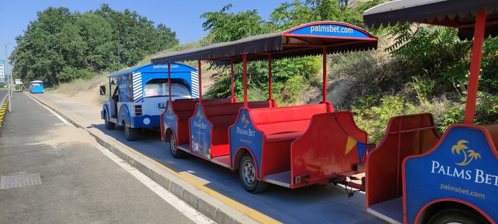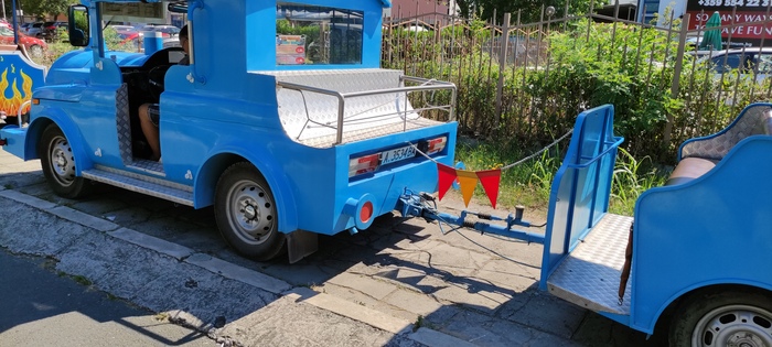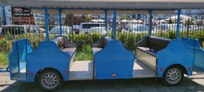 Вот такое чудо возит туристов в Болгарии, Слънчев бряг (более конкретно - Несебър). Минимум три "Нивы" конвертированы в тягачи для пассажирских прицепов. Скорость автопоезда на маршруте около 12-15 км/час. Двигатель родной, не на газу. Нива в основе дорест/рестайл. Две сфотографировал, третья на маршруте была.