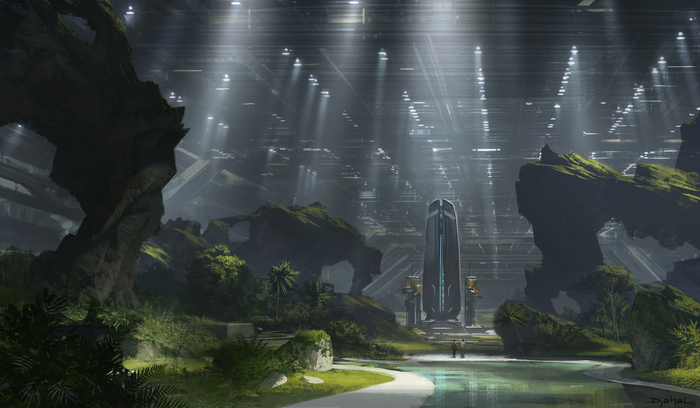 Возможно, основное действие должно было разворачиваться на гигантском объекте корпорации на Земле – на артах видно огромное здание с зелеными зонами и загадочным технологическим артефактом, который, скорее всего, должен был играть ключевую роль в сюжете.
