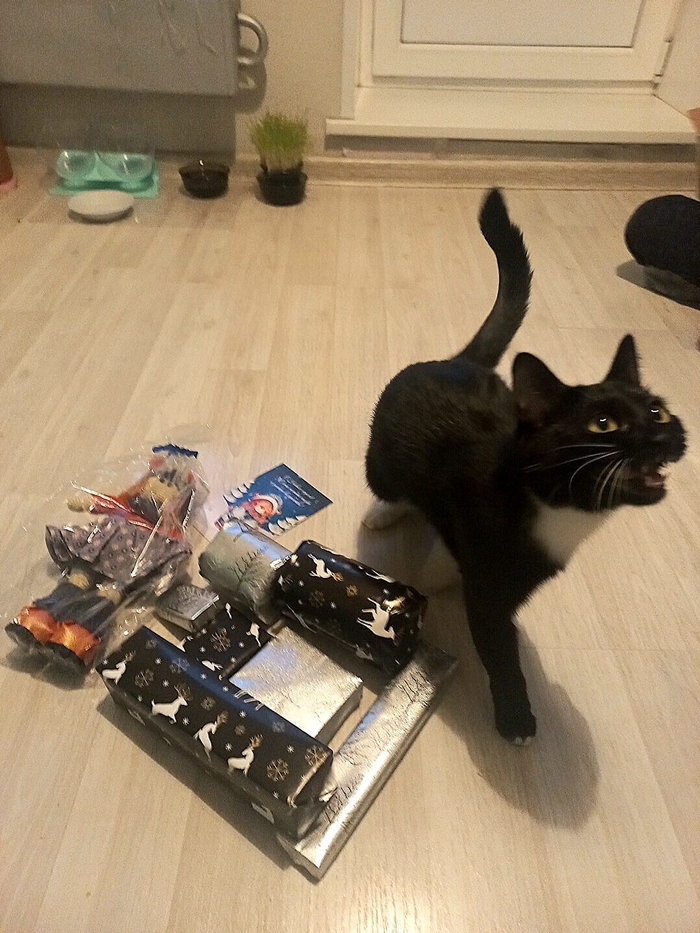 Благо я не огребла, и котэ вполне сносно исследовало подарок, разрешив его открыть)