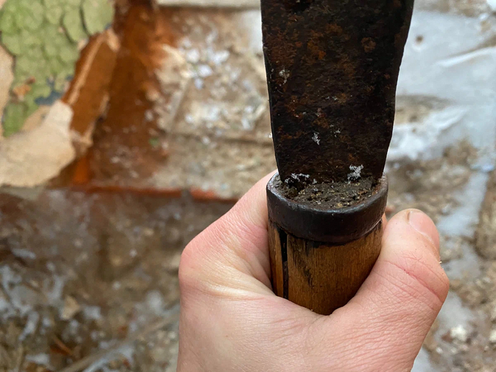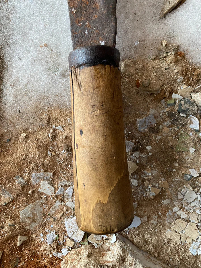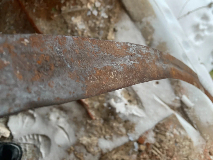 Всем привет. Это самый странный тесак, из всех, что я находил. Скорее всего - хозназначения. Но вот ряд вопросов: почему обратная заточка? Из чего он переделан? На кой такая длина?