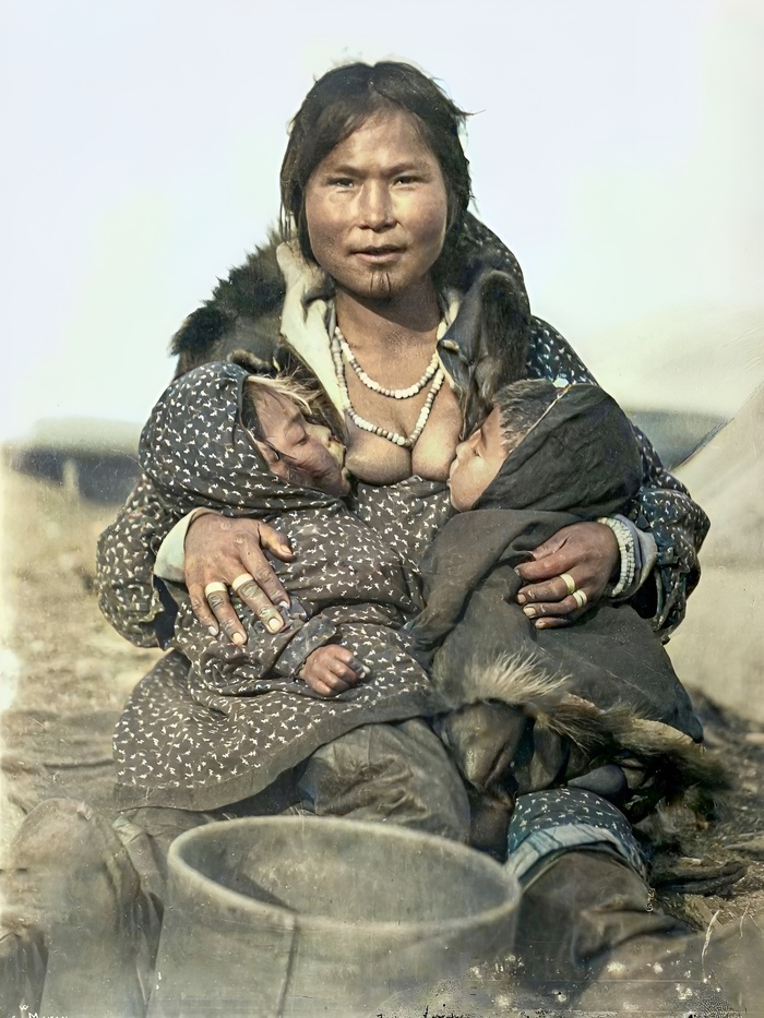 Эскимосская женщина, кормящая близнецов грудью, 1903-1908 г.