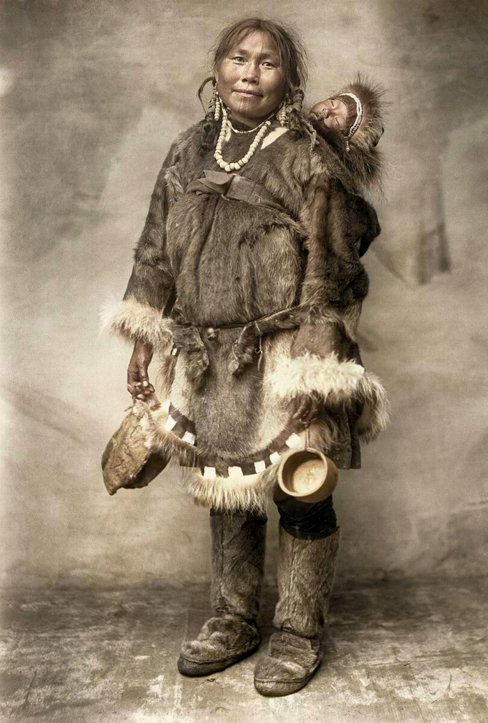 Эскимосская женщина с ребенком, 1903 год.