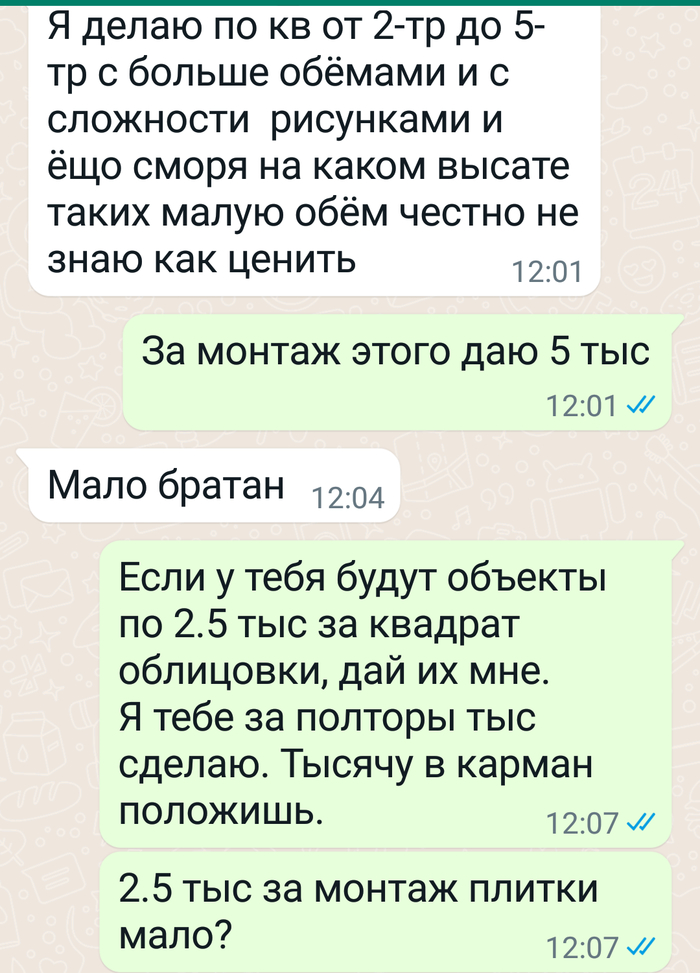 Это при том, что рабочая цена по Москве на монтаж надурального камня не более 1500 р за квадратный метр, в котором 18 плиток.