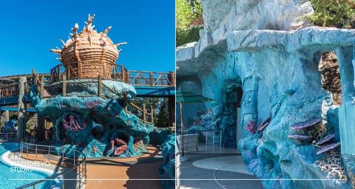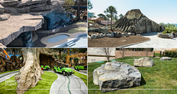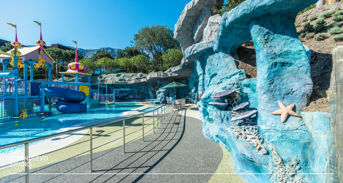Экзотическая атмосфера в аквапарках достигается посредством искусственных водопадов, гротов, пальм и деревьев из арт-бетона. Яркий и стильный декор создает уютную обстановку для отдыха детей и взрослых. От того, насколько качественно и реалистично выполнены декорации аквапарка, напрямую зависит его посещаемость и прибыльность.
