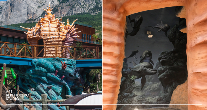 Колоссальный опыт команды ART BERENDEEVO STUDIO в облицовке зданий и дизайне интерьеров позволяет браться за проекты любой сложности. Среди них ― благоустройство аквапарков и океанариумов ― ещё одно направление деятельности студии.