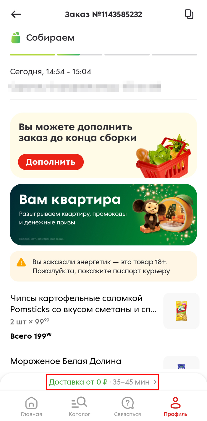Увидев, что в приложении указаны периоды доставки от 35 до 45 минут, я с глубоким вздохом создал заказ и перешёл в режим ожидания: