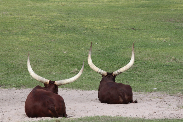 Пожалуй, самыми крупными рогами обладают ватусси. Рога этих парнокопытных зачастую достигают 2,4 м, а вес каждого из них обычно составляет 45 кг. Они пронизаны системой кровеносных сосудов и используются для терморегуляции при жаре. Кровь, циркулирующая по рогам, охлаждается потоками воздуха, и затем возвращается в тело, тем самым понижая его температуру.