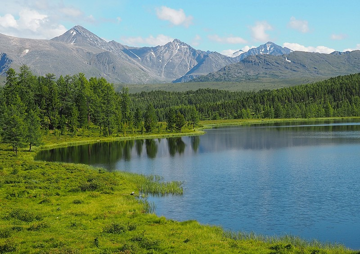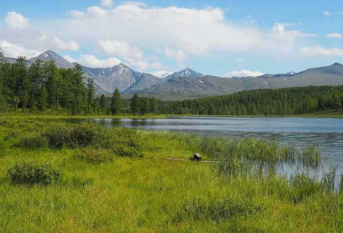 Озеро Киделю расположено в настоящем высокогорье: вокруг растут лиственницы, кедры, карликовые берёзки, можжевельник.