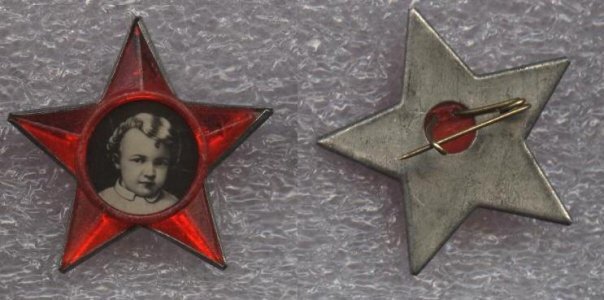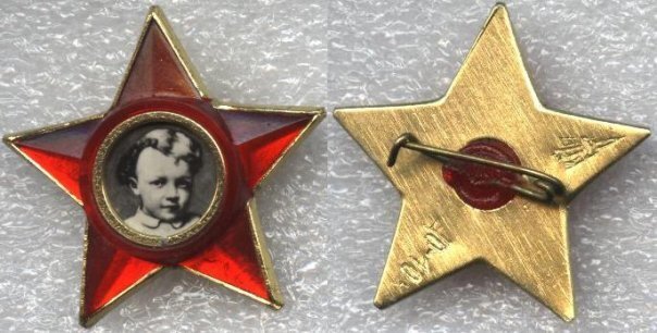 Знак представлял собой красную звезду с белым кругом в центре с изображением Володи Ульянова в возрасте трех лет.