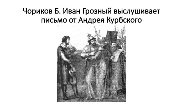 Особое место в этой истории занимает переписка Ивана Грозного и князя Курбского, растянувшаяся на 15 лет с 1564 по 1579 годы. Переписка включает всего пять писем — три написанных князем и два, автором которых является царь. Первые два письма были написаны в 1564 году, вскоре после бегства Курбского, затем переписка прервалась и продолжилась более чем через десятилетие.