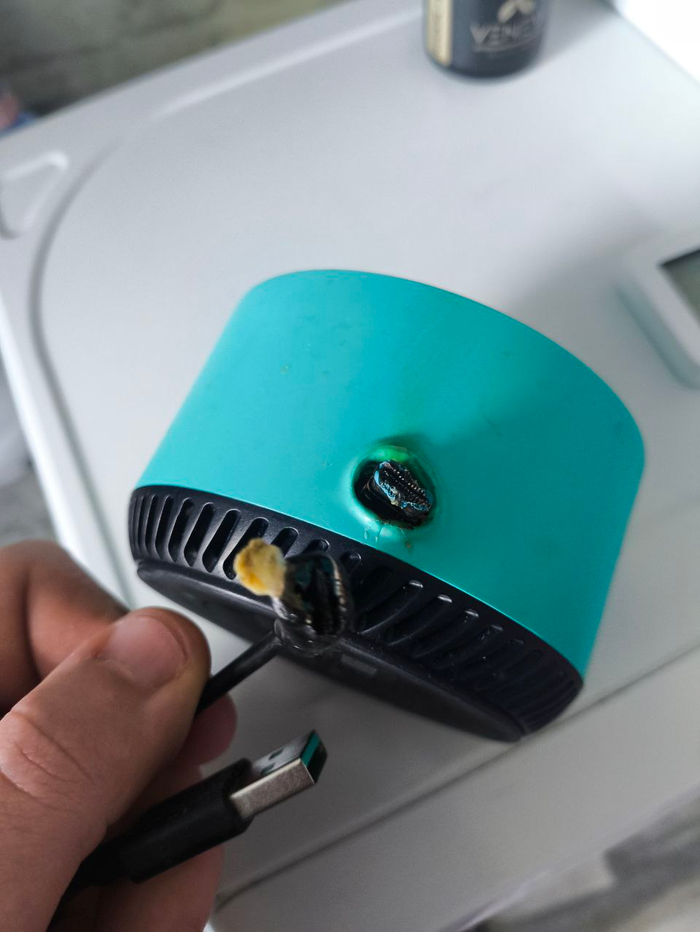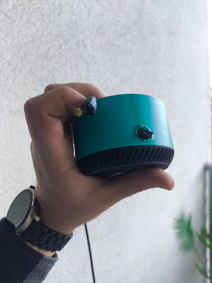 Решил включать автоматы по очереди, чтобы понять, в какой цепи проблема. При этом запах гари становился всё сильнее. И тут я повернул Яндекс Станцию стоящую на микроволновке и увидел, что её разъём полностью расплавлен.