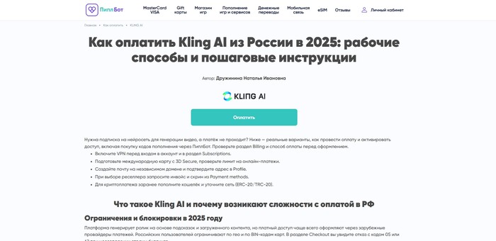Для удобного оформления подписки можно воспользоваться проверенными площадками, к которым легко перейти через рейтинг на Exnode: популярные сервисы вроде InOplata, Oplatym, OplataGuru, Oplatit.online и ПиплБот позволяют быстро и безопасно оплатить сервис из России, включая подписку на Kling Ai. Все они поддерживают российские способы оплаты и дают возможность оформить доступ за считанные минуты, делая работу с нейросетью максимально комфортной.
