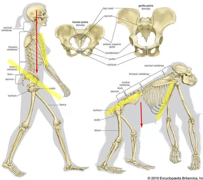 Для начала следует рассмотреть, как изменился организм четвероного существа, перешедшего к двуногости за сравнительно небольшой, по биологическим меркам, срок.