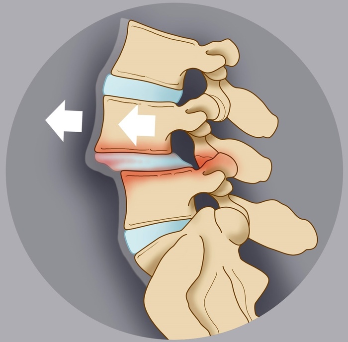 Для амортизации головы при движении позвоночный столб человека получил четыре изгиба: два кифоза и два лордоза. Для того, чтобы обеспечить подвижность во всех плоскостях, отдельные позвонки приобрели клиновидную форму, с более узкой передней, и более широкой, задней частью. Поскольку, максимальная нагрузка приходится на поясничный отдел, позвоночника, а изгиб там имеет максимальное значение, то и клиновидность позвонков там максимальна. При избыточной, (а иногда и при нормальной), физической нагрузке позвонки могут «соскальзывать» друг с друга. Это состояние носит название "спондилоптоз", и сопровождается сильной болезненностью, и нарушением движений и чувствительности. Единственным способом лечения является хирургическая коррекция.