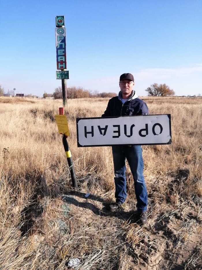 Есть в Алтайской крае, где-то между Благовещенкой и Кулундой деревня с очень примечательным названием. Езжу по этому маршруту в командировки раз в месяц, сам с Новосибирска. И завелась у меня традиция фоткаться на фоне знака этого населенного пункта). Один кон этот столб кто то сбил и сейчас табличка валяется в траве.