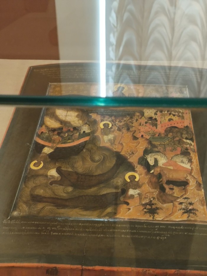 Этим летом в Петербурге, на выставке в Строгановском дворце живо вспомнила нашего музейного сома, увидев икону Строгановской школы "Деяния пророка Ионы" 17-го века.
