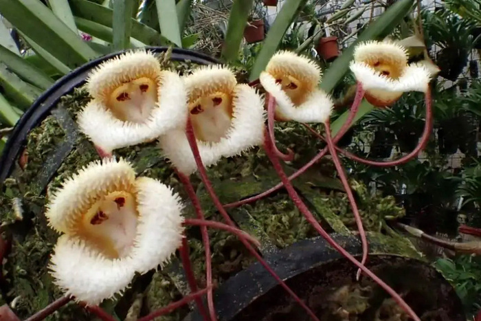 Полное видовое имя орхидеи на фото ниже "Дракула-обезьяна". Правда, кровь она не высасывает, как в рассказе фантаста. А Дракулой названа за отростки на концах цветка, напоминающие клыки вампира. Ну, а почему она называется "обезьяной", я думаю, и объяснять не нужно.