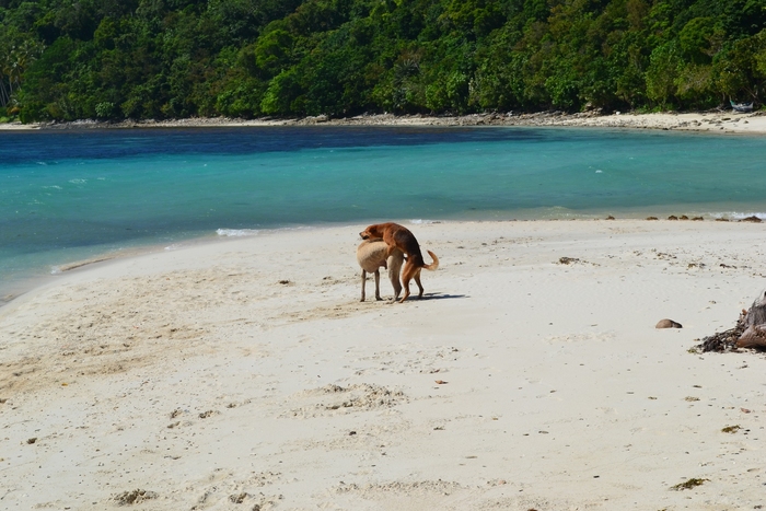 Несмотря на то, что этот остров также необитаем, жизнь на нем всё-таки присутствует в виде веселых собачек:)))