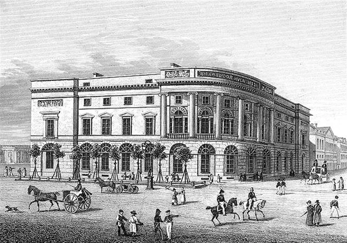 В 1827-м году окончательное решение о строительстве нового театра и окружающих зданий принял новый царь Николай I, которого раздражал непрезентабельный вид площади перед его любимым Аничковым дворцом. Здание нового театра вместимостью до 1 700 человек было построено в 1832-м году, на открытии была сыграна патриотическая пьеса М. В. Крюковского «Пожарский, или Освобождённая Москва».