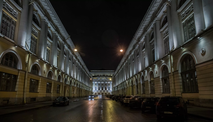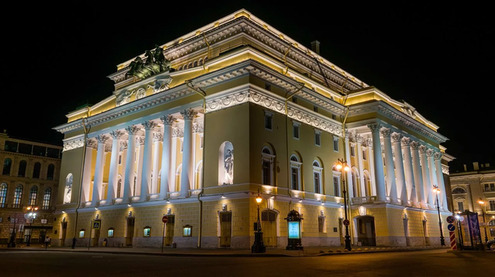 Улица зодчего Росси. Скромный такой подъезд к театру сзади; махины по обе стороны Карл Иванович считал «флигелями». Что ж, концепцию «Денег нет, но вы держитесь там» придумали давно.