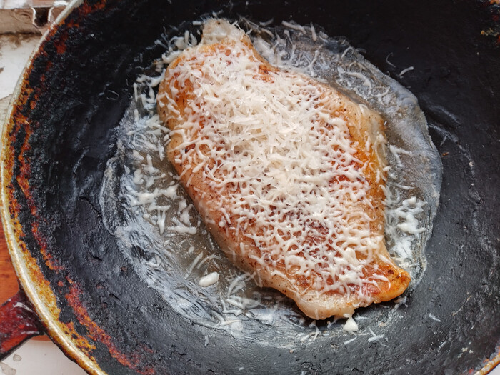 10. Пока варится картофель, нарежьте филе пангасиуса на кусочки. Такие, чтобы было удобно взять ложкой и съесть.