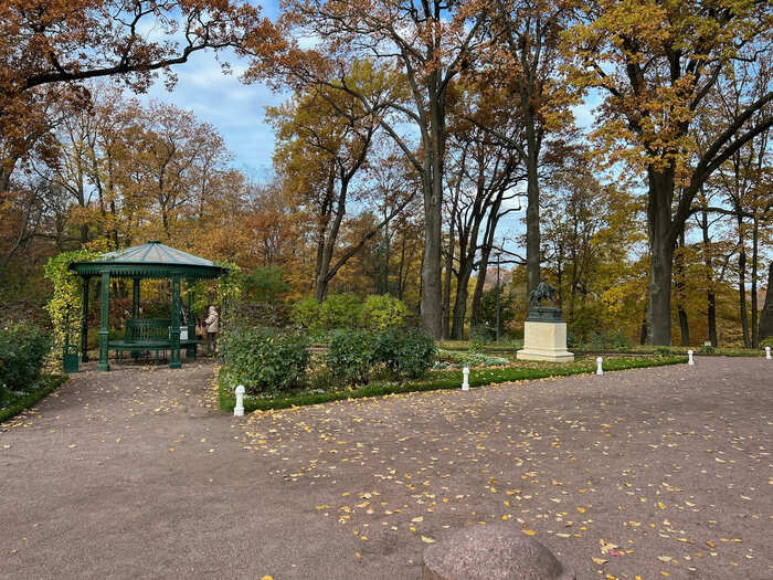 Парк Александрия назван так по имени своей первой владелицы – императрицы Александры Фёдоровны, супруги Николая I. Cолнце, цветы, тенистые рощи старых дубов, "музыка воды" ручья, просторы лугов под сливающимся с заливом бездонным небом – всё это и есть Александрия – семейное гнездо четырёх поколений династии Романовых.