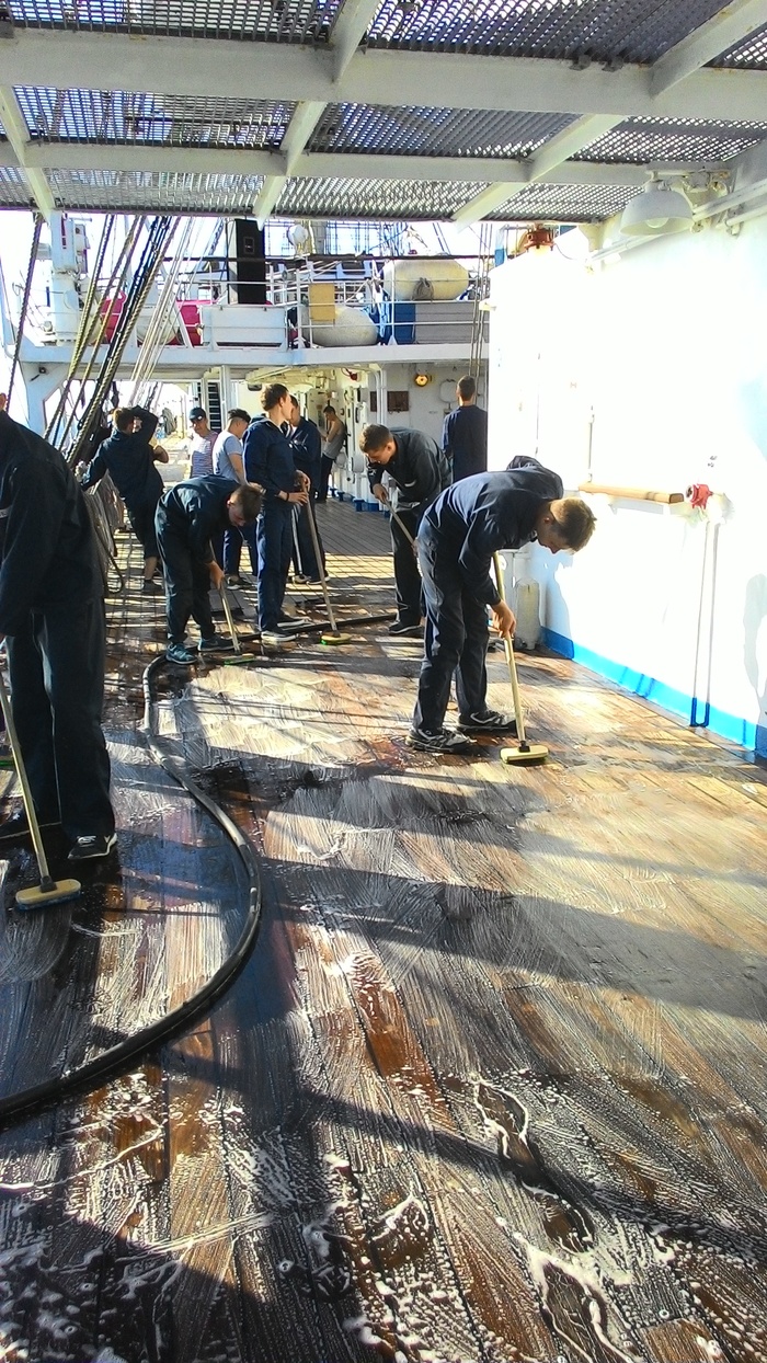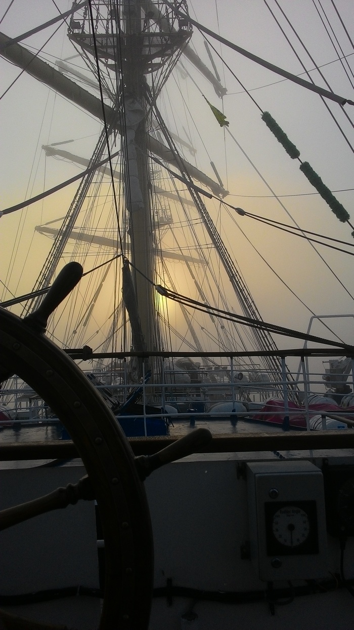 Даже после "Седова" и "Крузенштерна" этот красавец-фрегат очаровал нас с первых минут! Ветер рвал шапки, палуба покачивалась под ногами, а с капитанского мостика открывался вид, от которого захватывало дух. Жаль только, что таинственные трюмы остались за закрытыми люками — будто корабль оставил себе какие-то секреты.