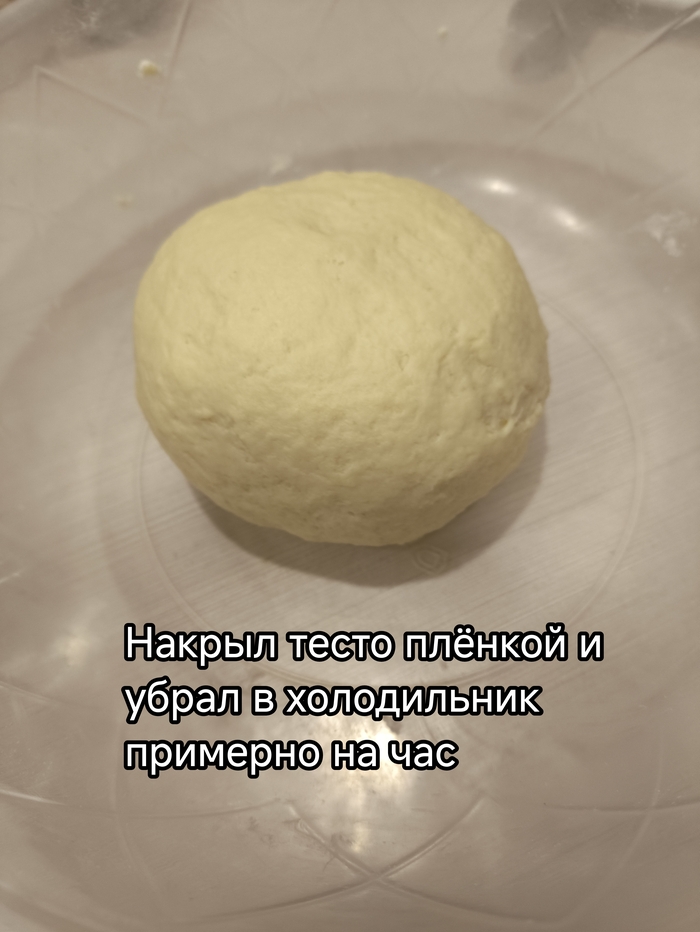 Делаем из него лепешку, заворачиваем в пищевую пленку или в пакет и кладем в холодильник на 1 час.