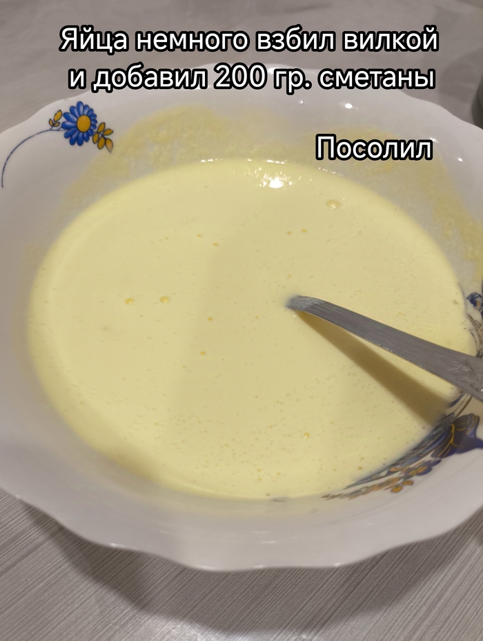 Добавляем яйцо и сметану, и уже окончательно замешиваем тесто.
