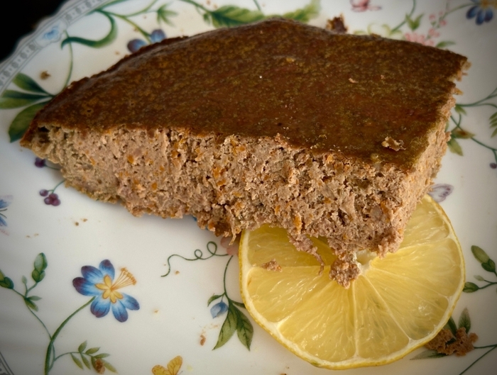 Вот. Суфле-не суфле, но получился весьма приятный на вкус запеченный паштет. Может я чего не так взблендерил, может чего перепёк, но вышло вот так. Не очень суфлевато. Суфле-оно же должно быть этаким? Воздушным? А у меня получилось плотным. Не подошва, но…