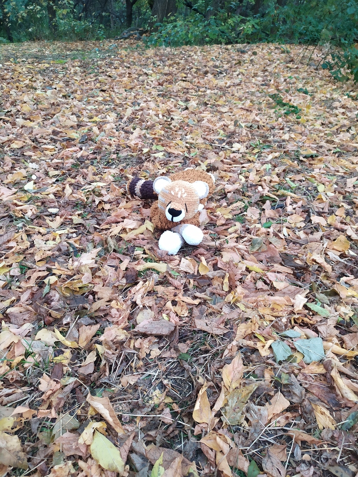 Это теперь я понимаю, что пряжа не та, крючек не подходящий. Мало набила холофайбером. Но как же я была довольна собой, мучилась месяц. Училась делать кольцо амигуруми и правильные петли))