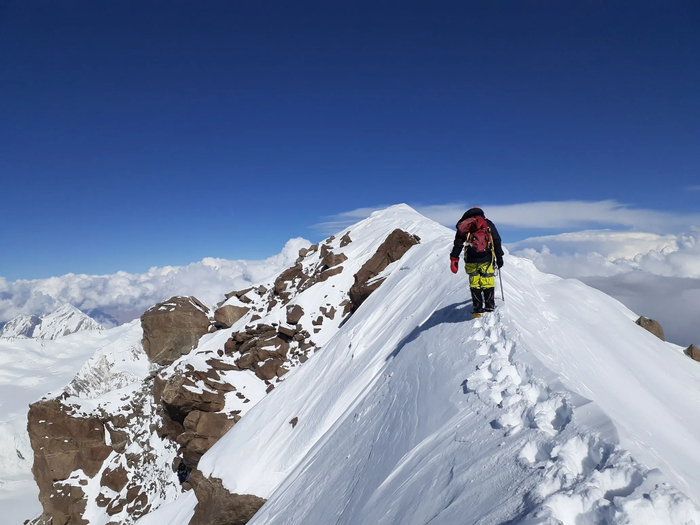 5 километров на семи тысячах метров — это не прогулка в парке. На это уходят все силы, все ресурсы тела и духа. И вот вы на вершине. Эйфория. Но нужно возвращаться. И путь назад — это не быстрый спуск, где с каждым шагом дышать становится легче. Но нет. Вам снова нужно пройти эти же 5 километров по гребню обратно. Итого — марафонская дистанция в 10 км в условиях «зоны смерти».