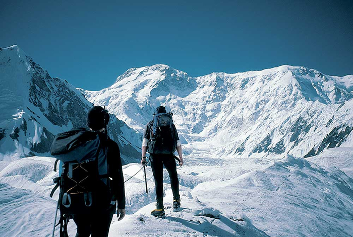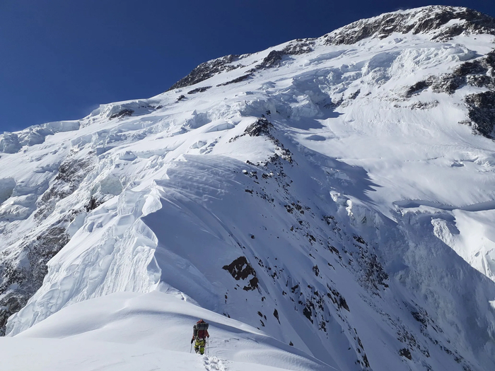 Классический путь — по Западному гребню, через перевал-пик Важа Пшавела. От 6900 до 7100 метров — 5 км по горизонтали по узкому снежному карнизу, где каждый шаг — на пределе. Потом 339 метров подъема на вершину.