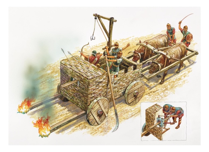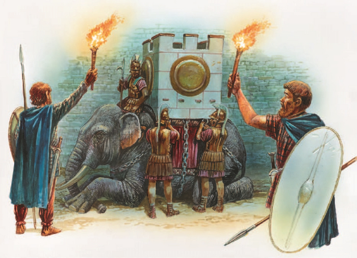 Вот только на слонах были размещены башни с бойцами, которые начали щедро осыпать возниц повозок дротиками, а охранение из легких войск подрезало сухожилия быкам, в результаты обслуга попрыгала с конструкций и бросилась бежать, врезавшись в легионеров, которые еще недавно планировали войти в прорыв и покрыть себя славой.