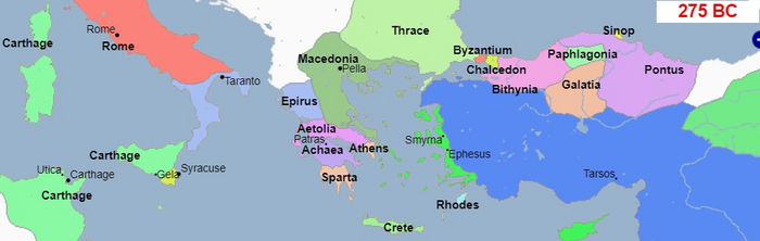 После победы при Аускуле к Пирру начали прибывать послы, так что ему даже пришлось выбирать – Птолемей Керавн пал в битве с галатами и самое время занять Македонию или отбыть в Сицилию, чтобы выбить оттуда карфагенян. Непостоянство македонян явно сидело в печенках у эпирота, а вот удар по владениям Карфагена был вполне логичным продолжением кампании против римлян, которые как раз объединились против него с пунийцами.