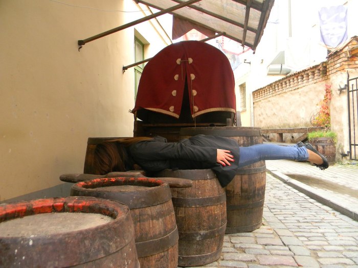 Мне тогда нравилось привлекать внимание, это давало заряд адреналина. Представьте, лечь на землю, лицом вниз на главной площади Таллина. Когда разбирала фото, от души над собой посмеялась. Предлагаю вам сделать тоже самое)