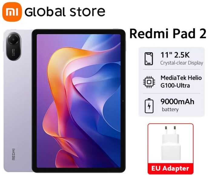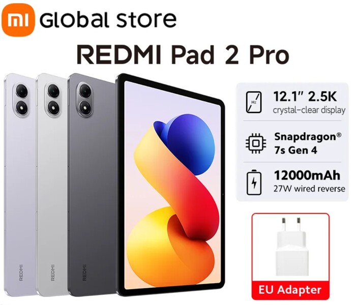 Еще один недорогой планшет - Redmi Pad 2 Pro от Xiaomi. В отличие от предыдущих, это полноценные 12.1". За счет увеличенного размера практически в полтора раза увеличена батарея - до 12000 мАч и чуть разогнали процессор проц Snapdragon 7s Gen4.